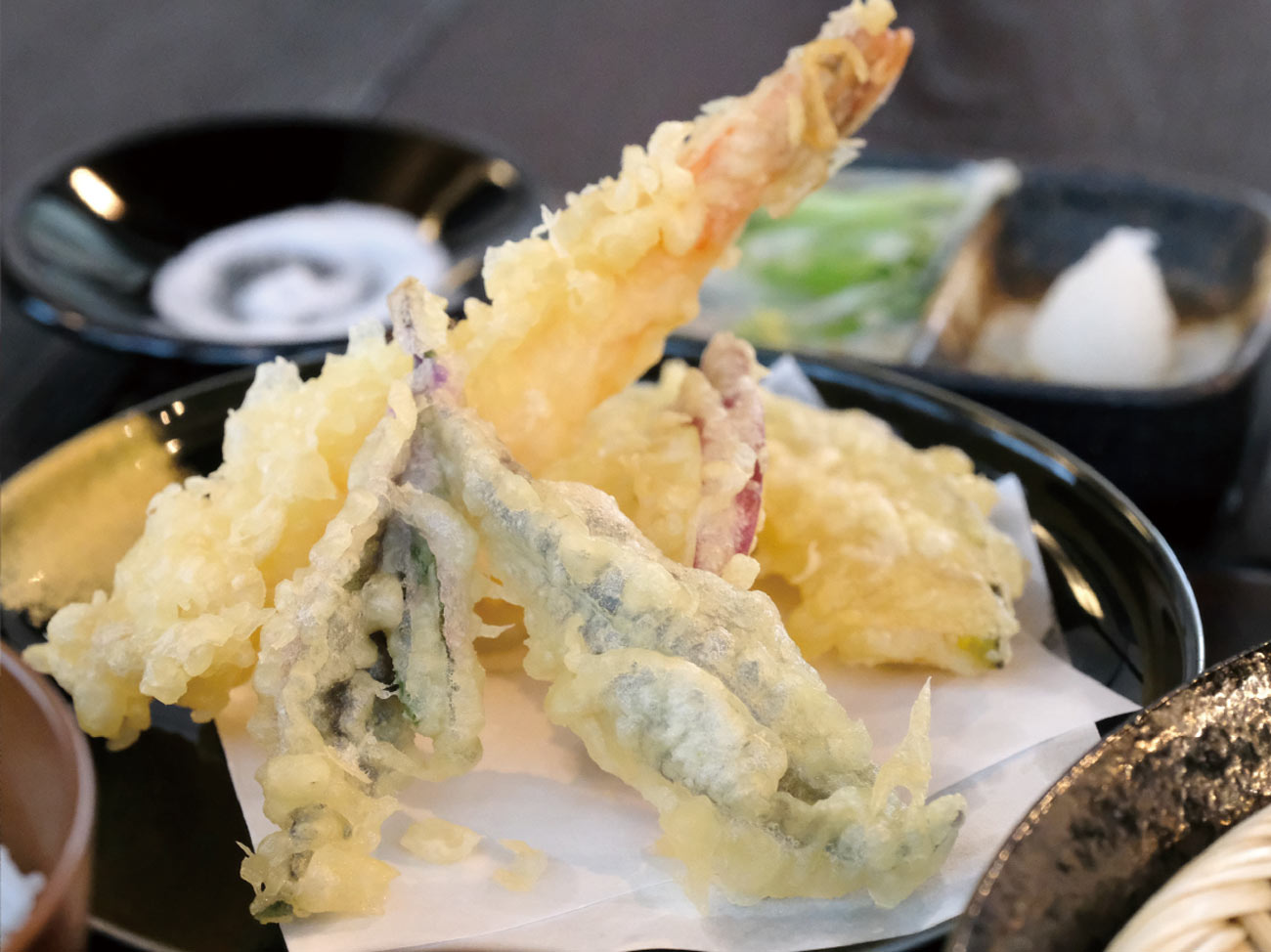 七尾市崎山地区で生産された蕎麦の実を自社で製粉して手打ちした二八蕎麦を提供しております。蕎麦だけでなく天ぷらなどの素材にもこだわっており、古民家風の店内で落ち着いてお召し上がりください。